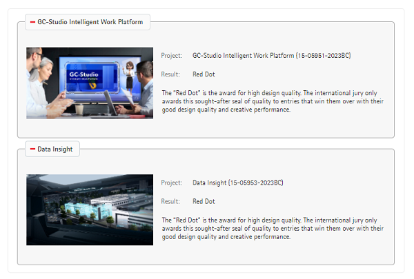 其中,紅點傳達設計獎是紅點獎重要分支之一,其全稱為“紅點品牌與視覺傳達設計獎”,主要收錄世界優(yōu)秀的視覺藝術設計作品。此次獲獎的移動云數(shù)據(jù)可視化DataInsight與GC-Studio智作平臺,不僅有優(yōu)秀的設計理念、新穎的視覺界面設計,并且還能夠滿足當下各類業(yè)務場景的數(shù)智化需求。