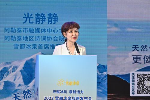 雪都冰泉首席推薦官光靜靜生動形象的介紹了雪都阿勒泰、新疆雪都冰川水有限公司的發(fā)展歷程及雪都冰泉的低氘特性。