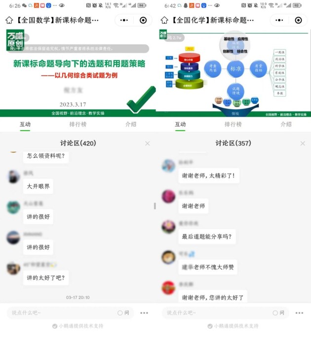 3月17日,萬唯特邀全國中考命題前沿省市專家,以新課標導向為切入點,聚焦“好題”在二輪復習的使用場景,通過對中考命題評估和全國考改趨勢的分析、好題選用標準的闡述等,策劃中考七科(不含地理、生物學)公益?zhèn)淇贾辈フn。內(nèi)容針對性、實用性強,吸引了超20萬人次老師觀看,對老師的教學和備考有非常積極的指導作用。
