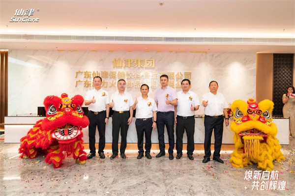 在瑞獅吐福的喜慶氣氛中,政府及行業(yè)各界嘉賓與仙津集團(tuán)領(lǐng)導(dǎo)高層,移步至揭牌儀式區(qū),松山湖黨工委委員、管委會(huì)委員黃鏡銓、松山湖管委會(huì)總經(jīng)濟(jì)師兼北部片區(qū)黨委書記陳潮暉、中國(guó)食品工業(yè)協(xié)會(huì)顧問張俊修、東莞市工商聯(lián)主席黃建平、東莞市上市公司協(xié)會(huì)會(huì)長(zhǎng)林海川,廣東仙津集團(tuán)有限公司董事長(zhǎng)鄧志華共同為仙津集團(tuán)揭牌,標(biāo)志著仙津集團(tuán)拉開嶄新序幕,走向全新征程!