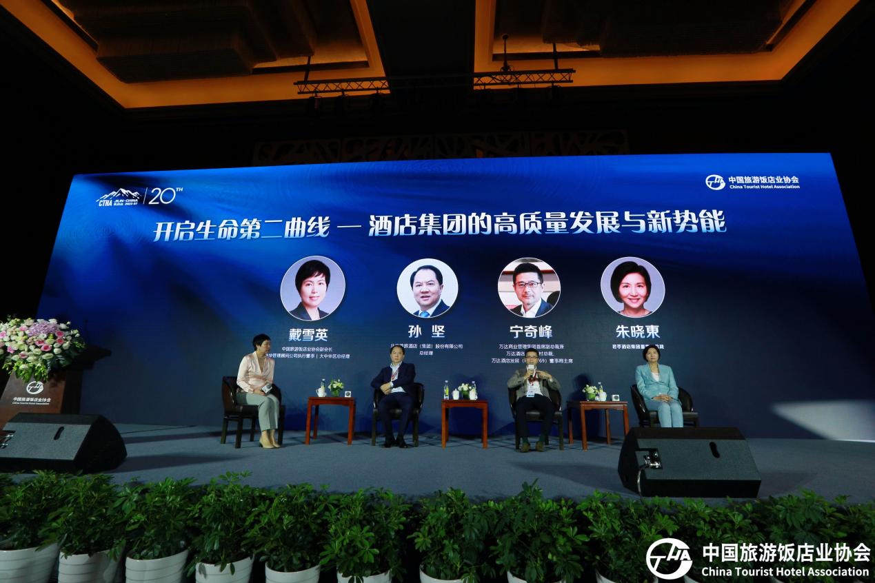 作為本場盛會的亮點之一,由中國旅游飯店協(xié)會副會長&浩華管理顧問公司執(zhí)行董事戴雪英擔任主持,與萬達商管集團首席副總裁兼萬達酒店及度假村總裁寧奇峰、北京首旅酒店(集團)股份有限公司總經(jīng)理孫堅、君亭酒店集團董事&總裁朱曉東展開深度對話,共同探討“開啟生命第二曲線——酒店集團的高質(zhì)量發(fā)展與新勢能”的行業(yè)課題。