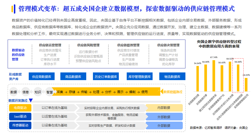 央國企在我國企業(yè)采購數(shù)字化進(jìn)程中的火車頭效應(yīng)越發(fā)明顯。據(jù)億邦智庫調(diào)研,超四成央國企表示數(shù)字化采購滲透率已經(jīng)超過50%;形成了央國企先行,引發(fā)供應(yīng)鏈各環(huán)節(jié)企業(yè)參與數(shù)字化創(chuàng)新變革的發(fā)展態(tài)勢。