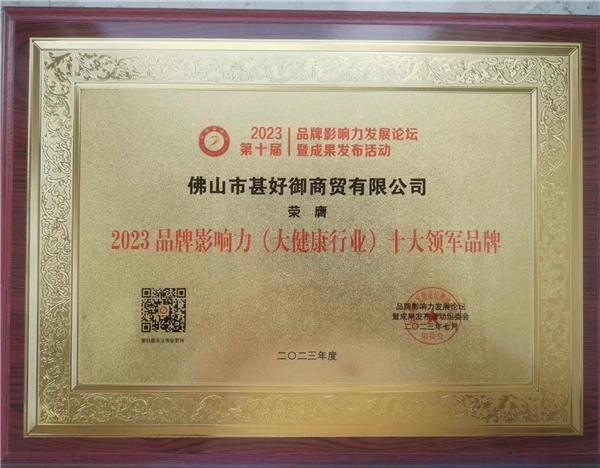 2023年7月21日-7月22日,2023(第十屆)品牌影響力發(fā)展論壇暨成果發(fā)布活動(dòng)在北京舉行。佛山市甚好御商貿(mào)有限公司及旗下品牌甚好御,憑借出眾的產(chǎn)品力及品牌力獲得了各界的高度認(rèn)可,榮獲“2023品牌影響力100強(qiáng)”“2023品牌影響力 (大健康行業(yè))十大領(lǐng)軍品牌”。甚好御董事長(zhǎng)王雄,榮獲“2023品牌影響力杰出創(chuàng)新人物”。