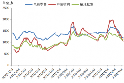本期新華·宜昌秭歸臍橙產(chǎn)地收購(gòu)價(jià)格指數(shù)報(bào)1038.48點(diǎn),環(huán)比下跌3.69%,同比下跌34.10%;新華·宜昌秭歸臍橙電商價(jià)格指數(shù)報(bào)1199.13點(diǎn),環(huán)比持平,同比下跌10.05%;新華(中國(guó))臍橙銷地批發(fā)價(jià)格指數(shù)報(bào)1145.94點(diǎn),環(huán)比上漲5.31%,同比下跌12.72%。
