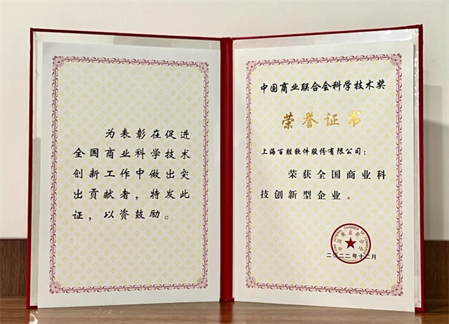 經(jīng)過(guò)中國(guó)商業(yè)聯(lián)合會(huì)評(píng)審專(zhuān)家組的嚴(yán)格評(píng)審,百勝軟件憑借在零售領(lǐng)域的諸多技術(shù)創(chuàng)新和推動(dòng)行業(yè)發(fā)展的突出貢獻(xiàn),榮膺“2022年全國(guó)商業(yè)科技創(chuàng)新型企業(yè)”,公司實(shí)力再獲權(quán)威認(rèn)可。