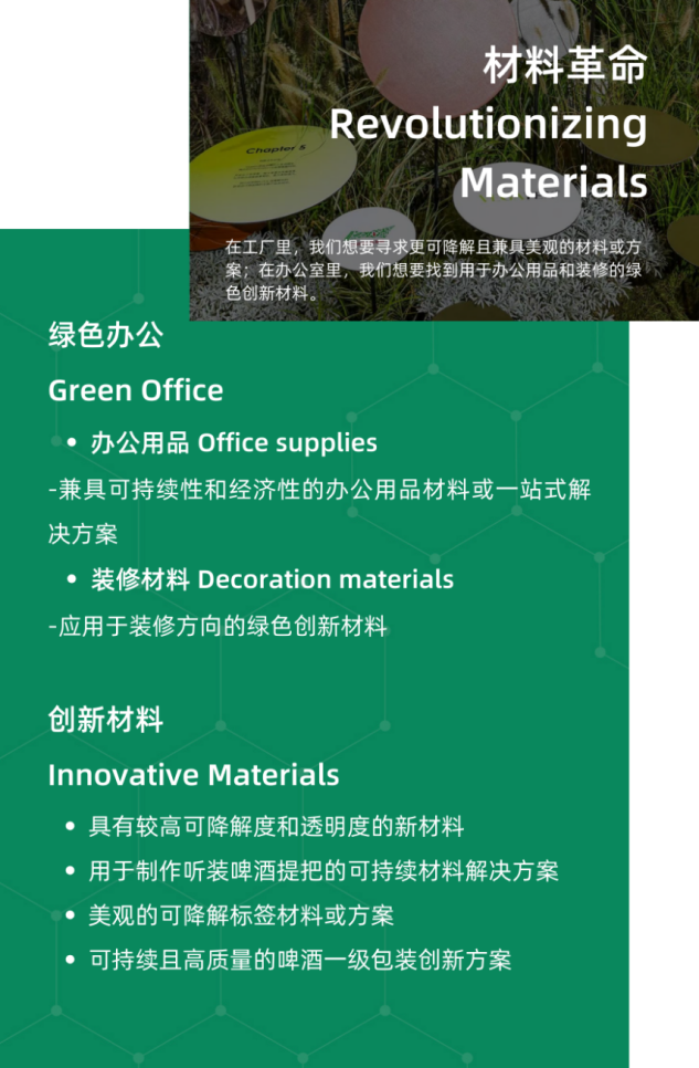 無論是處于種子輪還是有了一定的規(guī)模,只要你認(rèn)為自己的產(chǎn)品、服務(wù)、解決方案有任何關(guān)聯(lián)性,我們都鼓勵您積極報名,共拓可持續(xù)商業(yè)機(jī)會!今年的挑戰(zhàn)議題如下: