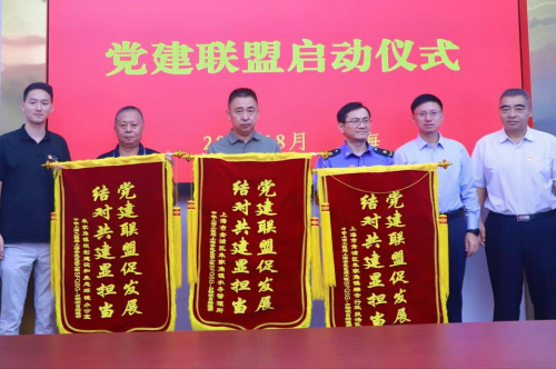 啟動儀式現(xiàn)場,青浦區(qū)朱家角鎮(zhèn)黨委委員王磊,中鐵上海工程局集團有限公司城建分公司黨委副書記、工會主席張文續(xù),上海申鐵投資有限公司項目經(jīng)理何喬石現(xiàn)場為各聯(lián)建單位授予“黨建聯(lián)盟促發(fā)展,結對共建顯擔當”錦旗,并共同見證上海示范區(qū)線5標項目部與各單位締結《黨建聯(lián)建協(xié)議書》。據(jù)了解,聯(lián)盟成立后,各聯(lián)建單位將相互交流黨建工作經(jīng)驗,共同開展黨建共建活動,通過推進區(qū)域化黨建,盤活黨組織力量資源,實現(xiàn)黨建與生產深度融合,以高質量黨建引領高質量發(fā)展。