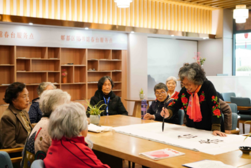 活動中,另一位80多歲的阿姨現(xiàn)場書寫了“春臺書香”四個大字,寄語書香社區(qū)的營建。