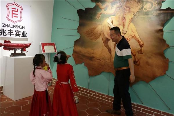 在300多平米店鋪,向人們展示皮雕文化起源,皮雕藝術(shù)發(fā)展、皮雕材質(zhì)應(yīng)用、皮雕文創(chuàng)產(chǎn)品,皮雕體驗(yàn)等,亮相人們視野,仿佛走進(jìn)皮雕博物館,其中巨幅紅色皮雕文化作品《新征程、再出發(fā)》、《江山永固》、《氣壯山河》等引人矚目,令人贊嘆不已。