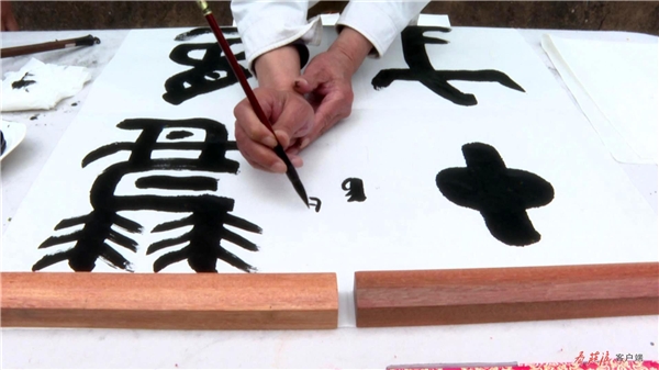 在農(nóng)家小院,閻正正在聚精會神地?fù)]毫潑墨,他在筆墨的運(yùn)用上別出心裁、匠心獨(dú)運(yùn),流暢的線條蒼勁有力,書法作品淋漓盡致地展現(xiàn)于尺幅之上。談起他創(chuàng)作的靈感,閻正說,“莊浪歷史悠久、文化底蘊(yùn)深厚、森林植被覆蓋率高,儼然一幅天然山水畫。莊浪縣云崖寺自然風(fēng)光秀麗,石窟藝術(shù)精美,有遠(yuǎn)山、有水庫、有寺廟,它完全具備中國畫的每一個條件?!?/p>