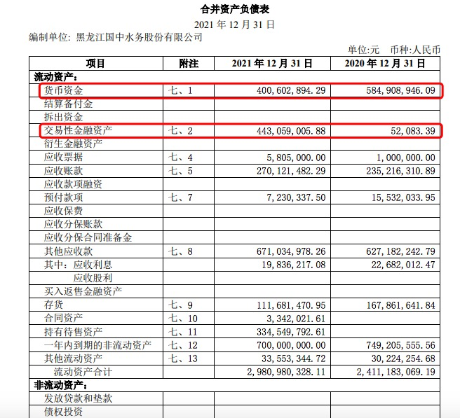 資金方面,截至2021年年末,國中水務流動資產(chǎn)合計29.81億元,其中貨幣資金4.01億元,主要為銀行存款;交易性金融資產(chǎn)為4.43億元,主要為銀行理財產(chǎn)品。
