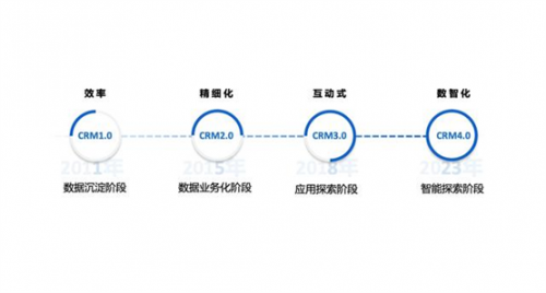 南訊向36氪展示了產(chǎn)品和服務的迭代升級,作為助力品牌連接用戶的紐帶,在不斷進化的十三年時間里,南訊圍繞ToC領域CRM的進化過程,將CRM從1.0到4.0總結為:數(shù)據(jù)沉淀階段、數(shù)據(jù)業(yè)務化階段、應用探索階段、智能探索階段,并且提煉出了4個發(fā)展階段的核心要點:效率、精細化、互動式、數(shù)智化。