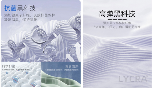 更系統(tǒng)來(lái)講,VOVOS 的“黑科技”大概有以下幾點(diǎn):① 無(wú)痕工藝:運(yùn)用德國(guó)漢高膠水,良好的粘接強(qiáng)度和耐熱性支撐性強(qiáng),貼合無(wú)痕。② 萊卡面料:極大提高面料的彈性和延展性,與其他纖維對(duì)比伸展度可以達(dá)到500%。貼合人體,束縛力小。除此之外,銀離子、石墨烯面料和涼感紗織等科技也能著重提升抗菌、透氣與涼感和防紫外線等功能。