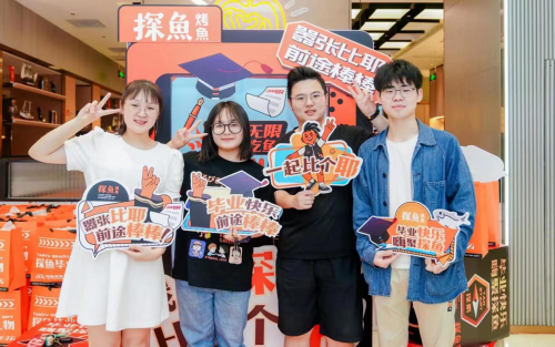 學(xué)生是Z世代的另一重身份,他們愛玩、注重體驗(yàn)和儀式感,樂于嘗新,對未知充滿期待。面對畢業(yè)這一人生重要節(jié)點(diǎn),好友相聚的聚餐場景需求自然形成,但餐飲品牌卻很少可以捕捉這一痛點(diǎn)。專注年輕化、關(guān)注年輕群體的探魚發(fā)掘場景需求、升級互動方式,把握這一機(jī)遇,也收獲了良好的正向反饋。