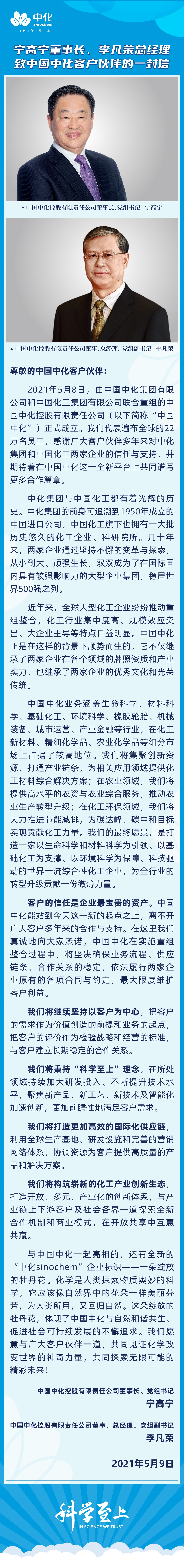 寧高寧董事長(zhǎng)、李凡榮總經(jīng)理致中國(guó)中化客戶伙伴的一封信