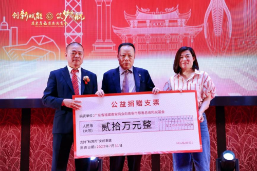 就職典禮上,廣東省福建南安商會積極響應南安市委統(tǒng)戰(zhàn)部、市工商聯(lián)、市慈善總會號召,向南安市同心陽光基金捐贈人民幣20萬元,用于助力家鄉(xiāng)“杜蘇芮”臺風災后重建工作。