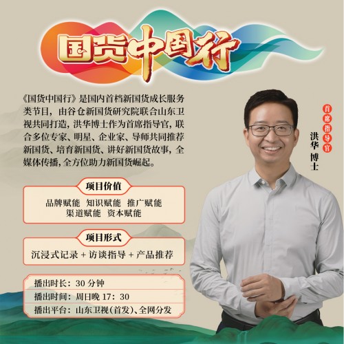2022年,谷倉(cāng)新國(guó)貨研究院?jiǎn)?dòng)全新的新國(guó)貨培育戰(zhàn)略,以用戶為核心,通過(guò)爆品戰(zhàn)略、品牌戰(zhàn)略和流量戰(zhàn)略三大戰(zhàn)略推動(dòng)新國(guó)貨崛起。除此之外,谷倉(cāng)新國(guó)貨研究院聯(lián)合山東衛(wèi)視重磅打造中國(guó)首檔新國(guó)貨成長(zhǎng)服務(wù)類節(jié)目《國(guó)貨中國(guó)行》,洪華博士作為首席指導(dǎo)官,聯(lián)合多位專家、明星、企業(yè)家、導(dǎo)師共同推薦新國(guó)貨、培育新國(guó)貨、講好新國(guó)貨故事,全媒體傳播,全方位助力新國(guó)貨崛起。