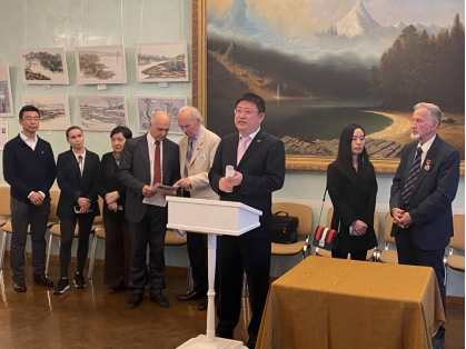 中俄人文合作發(fā)展中心理事長尹斌先生在發(fā)言中談到:“藝術家劉子輿先生在莫斯科生活多年,在此期間,他給很多俄羅斯人傳授中國的水墨,為發(fā)揚中國文化作出了巨大貢獻。”