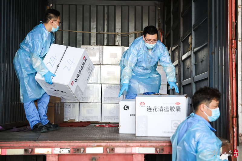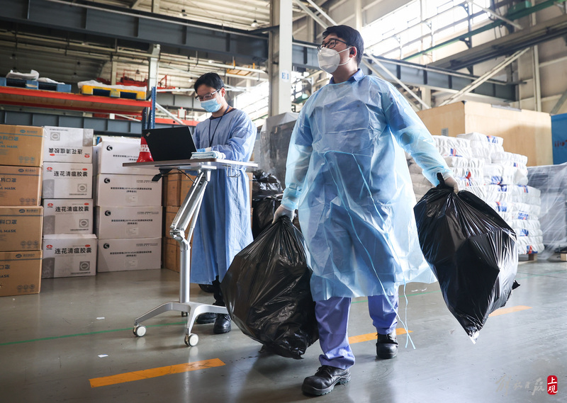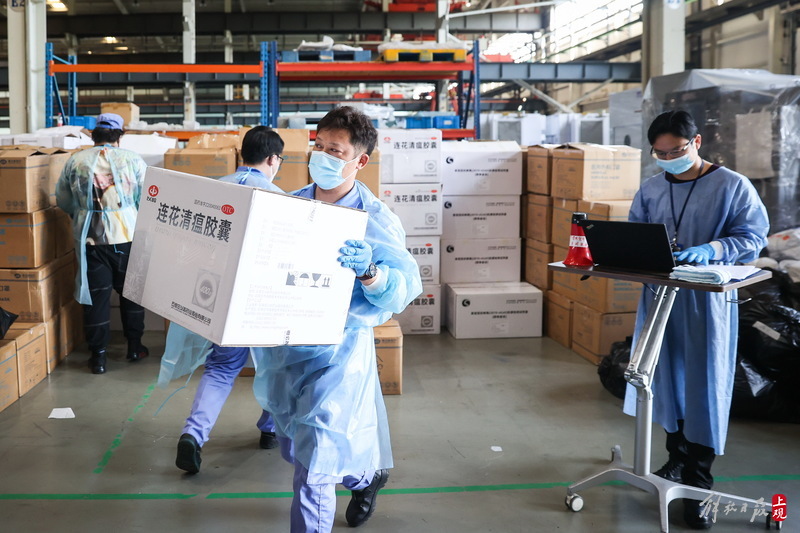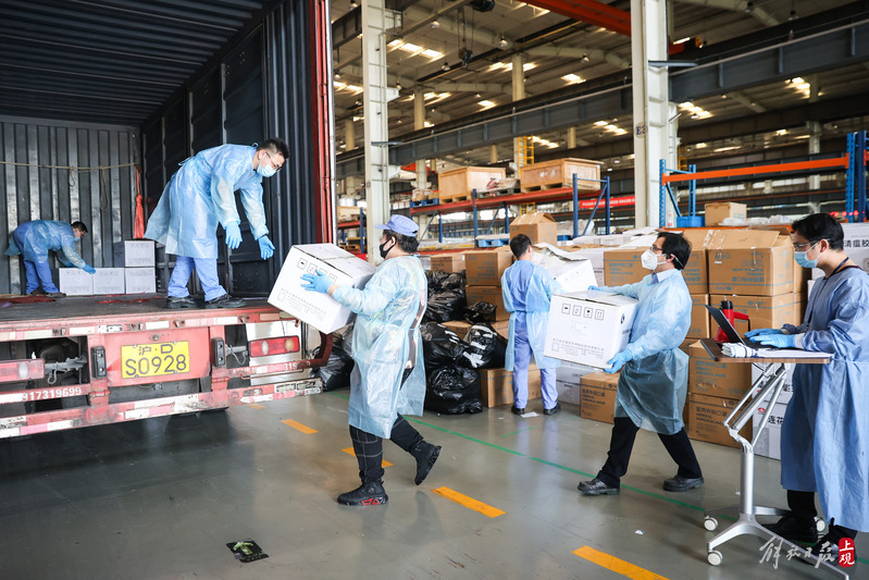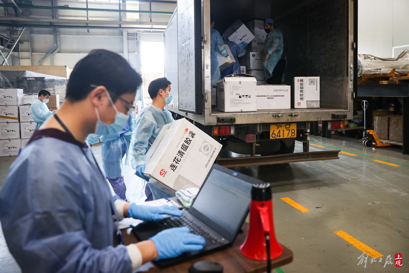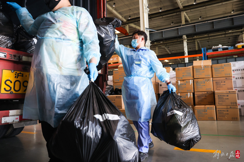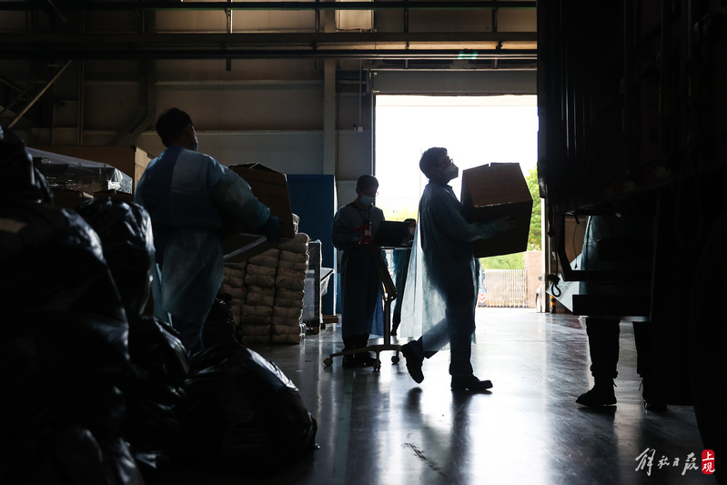 為不增加基層負(fù)擔(dān),寶山區(qū)啟用7個(gè)分揀點(diǎn)對(duì)應(yīng)13個(gè)街鎮(zhèn)園區(qū),由招募來(lái)的企業(yè)職工及志愿者流水線作業(yè),對(duì)物資開(kāi)展卸貨、分裝。