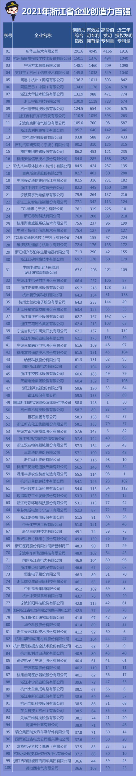 據(jù)悉,該榜單去年起首次發(fā)布,今年以2021年底數(shù)據(jù)為基準(zhǔn),根據(jù)有效發(fā)明專利數(shù)量、高價(jià)值發(fā)明專利數(shù)量和近三年發(fā)明專利授權(quán)數(shù)量等指標(biāo),對(duì)省內(nèi)企業(yè)創(chuàng)造力進(jìn)行了評(píng)價(jià)排名。