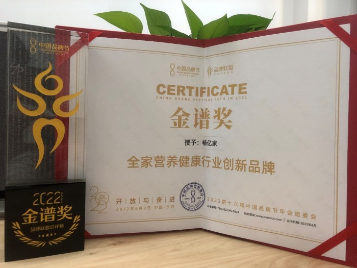 8月8日至9日,2022第十六屆中國品牌節(jié)年會在長沙盛大召開,“2022中國品牌金譜獎”評選隨之新鮮出爐,暢億家榮獲“金譜獎·全家營養(yǎng)健康行業(yè)創(chuàng)新品牌”,成為今年獨一上榜“金譜獎”的大健康創(chuàng)新品牌。金譜獎通過品牌行業(yè)地位、品牌購買力、品牌活躍度、消費者影響力、品牌社會責(zé)任感等多項指數(shù)的綜合評選,評選行業(yè)年度表現(xiàn)最佳的品牌,每年評選1次。每行業(yè)入圍30強,最后決出品牌中國金譜獎榮譽。
