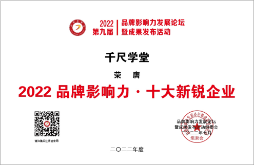 近日,由《發(fā)現(xiàn)品牌》欄目組、對(duì)外經(jīng)濟(jì)貿(mào)易大學(xué)中國(guó)國(guó)際品牌戰(zhàn)略研究中心、《中國(guó)企業(yè)報(bào)》集團(tuán)主辦的2022品牌影響力發(fā)展論壇暨成果發(fā)布活動(dòng)正式舉辦?;顒?dòng)以“大力發(fā)展品牌戰(zhàn)略促進(jìn)經(jīng)濟(jì)高質(zhì)量發(fā)展”為主題。圍繞中國(guó)品牌創(chuàng)建行動(dòng),培育新型消費(fèi),實(shí)施領(lǐng)航企業(yè)培育工程,促進(jìn)專精特新小巨人企業(yè)培育等內(nèi)容展開(kāi)分析探討。在著重推介具有優(yōu)秀成長(zhǎng)性或影響力的品牌環(huán)節(jié)中,千尺學(xué)堂榮膺“2022品牌影響力·十大新銳企業(yè)”、“2022品牌影響力·踐行社會(huì)責(zé)任十大典范”兩項(xiàng)大獎(jiǎng)。