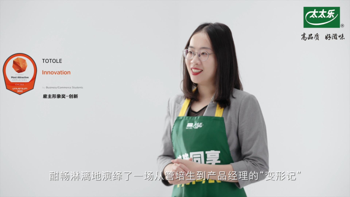 產(chǎn)品經(jīng)理Grace:太太樂(lè)作為中國(guó)雞精品類(lèi)的領(lǐng)“鮮“者,其創(chuàng)立之初就自帶創(chuàng)新的基因。34年后的今天,太太樂(lè)正在開(kāi)發(fā)更多滿(mǎn)足消費(fèi)者需求的新產(chǎn)品,我也有幸成為了其中的參與者。在工作中創(chuàng)造不同的同時(shí),得益于定制化的職業(yè)發(fā)展路徑,我成功從一名管培生蛻變成了獨(dú)當(dāng)一面的產(chǎn)品經(jīng)理,獨(dú)立負(fù)責(zé)一個(gè)產(chǎn)品系列和領(lǐng)導(dǎo)一支團(tuán)隊(duì)。作為這種鼓勵(lì)創(chuàng)新、擁抱人才的文化的受益者,我也會(huì)在接下來(lái)的團(tuán)隊(duì)管理中支持晚輩的新點(diǎn)子,為他們提供職業(yè)發(fā)展指導(dǎo),助力他們成為更好的自己。