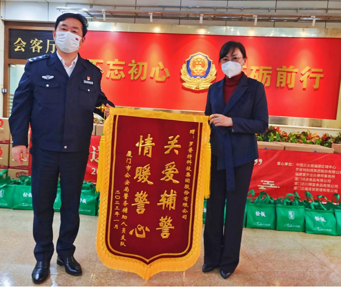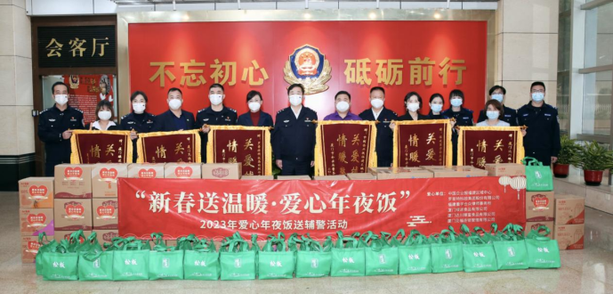由中國企業(yè)報(bào)福建公司發(fā)起的“2023愛心年夜飯送輔警活動”第三個(gè)中國人民警察節(jié)當(dāng)天在廈門市公安局大院隆重舉行,來自羅普特科技集團(tuán)股份有限公司、福建重宇合眾律師事務(wù)所、廈門綠進(jìn)食品有限公司、廈門達(dá)川臻富食品有限公司、廈門見福連鎖管理有限公司等愛心企業(yè)為廈門輔警支隊(duì)一線輔警送來了節(jié)日的問候和預(yù)制菜、油、果汁等愛心年夜飯“大禮包”,以及口罩等防疫物資,向奮斗在在一線守護(hù)廈門城市平安的執(zhí)勤輔警表示感激和敬意。
