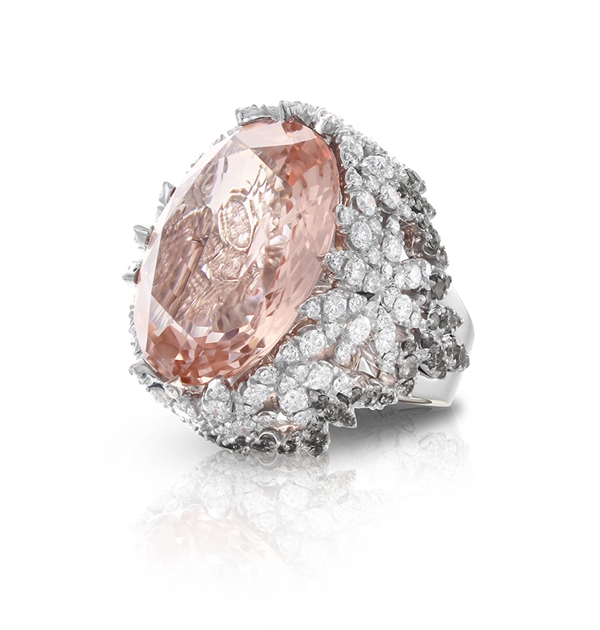 Bon Ton系列是Pasquale Bruni的經(jīng)典標(biāo)志性系列作品,通過(guò)“五瓣花朵”的標(biāo)志造型,詮釋代表女性?xún)?yōu)雅、和諧的氣質(zhì)和精致的生活方式。獨(dú)家專(zhuān)利的“Bon Ton切工”,以精致的切割比例和切面的柔軟花瓣為象征,在寶石中心形成圓形花蕊。