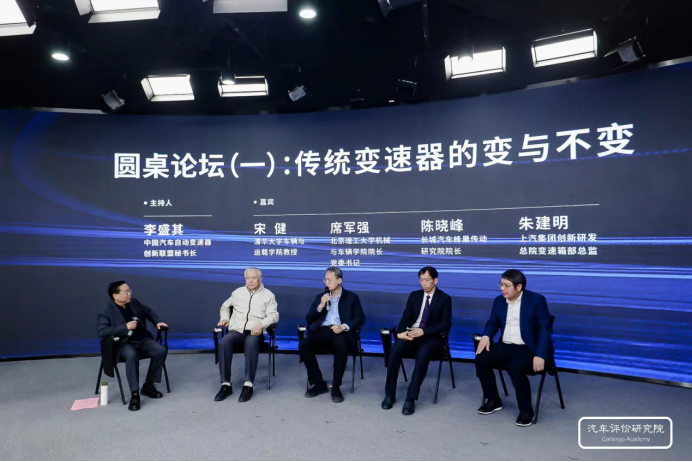在中國汽車自動變速器創(chuàng)新聯(lián)盟秘書長李盛其的主持下,清華大學車輛與運載學院教授宋健,北京理工大學機械與車輛學院院長、黨委書記席軍強教授,蜂巢傳動研發(fā)副總裁陳曉峰,上汽集團創(chuàng)新研發(fā)總院變速箱部總監(jiān)朱建明等,圍繞著“傳統(tǒng)變速器的變與不變”這一主題進行了交流討論。