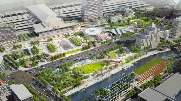 規(guī)劃形成三廊兩帶的空間結構,打造區(qū)域樞紐互融節(jié)點、運河創(chuàng)新復興樣板、社區(qū)營建更新示范,打造產(chǎn)城門戶,通過文化復興、城河共融,重塑融貫古今的文化旅游新基地。