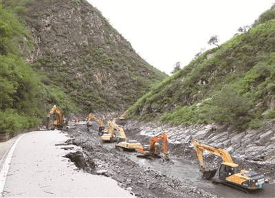 8月5日16時(shí),隨著北京建工機(jī)施集團(tuán)副總經(jīng)理劉海龍趕到史家營(yíng)鄉(xiāng)政府向鄉(xiāng)長(zhǎng)匯報(bào)搶險(xiǎn)結(jié)果,標(biāo)志著經(jīng)過(guò)30小時(shí)鏖戰(zhàn),北京建工機(jī)施集團(tuán)全面打通了賈金路賈峪口至史家營(yíng)鄉(xiāng)18公里交通生命線。