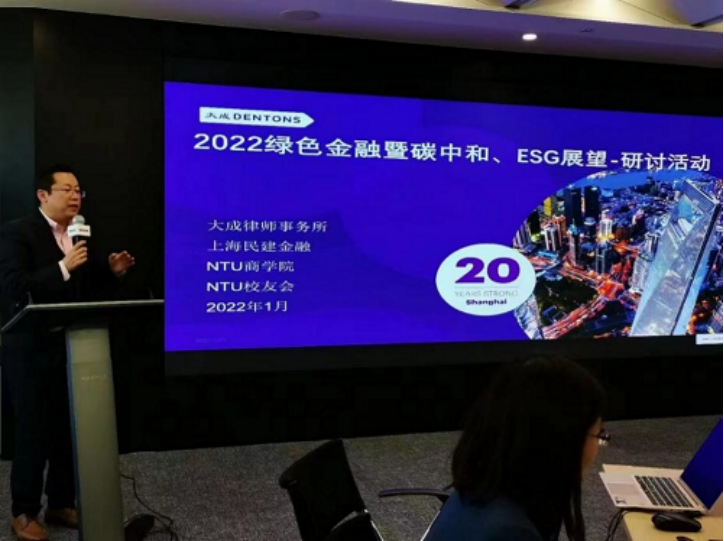 2022年1月15日,大成(上海)律師事務所聯(lián)合中金財富、民建上海金融工委、NTU商學院校友,共同舉辦“2022綠色金融暨碳中和、ESG展望研討活動”。