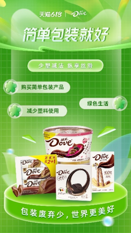 旗下德芙部分可持續(xù)包裝產品上線天貓618“簡單包裝就好”專區(qū)