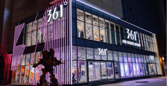 數(shù)據(jù)顯示,截至2022年12月31日,361°品牌在全球擁有6672間門店,內(nèi)地銷售門店較2021年底凈增210個至5480間,一二線城市門店占比提升至23.7%;最新的第九代形象店數(shù)量提升20.4%至2664家,占比為48.6%,門店平均面積升至129㎡。