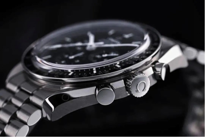 腕表的表殼采用精鋼材質(zhì),表殼側(cè)面的表冠及計(jì)時(shí)按鈕同樣采用了這一材質(zhì)。歐米茄采用的是316L精鋼。這種材質(zhì)以耐腐蝕、拋光后光澤度高而著稱,通常是打造在高強(qiáng)度環(huán)境下使用腕表的理想材質(zhì)。