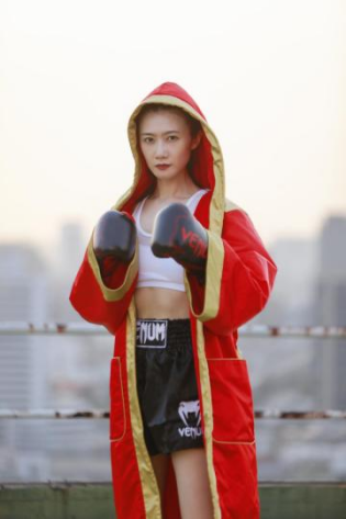 于是我在想如果是參加比賽的話(huà),那么就有可能會(huì)遇到在全球范圍之內(nèi)能跟我有同樣量級(jí)的職業(yè)拳擊手。果不其然,這一次去泰國(guó)比賽就遇到了Siritorn,她也是108磅量級(jí)的職業(yè)拳擊手,從小訓(xùn)練泰拳,所以經(jīng)由這我就開(kāi)啟了自己的職業(yè)比賽之路。我覺(jué)得拳擊比賽對(duì)我來(lái)講就是一次拳擊的集中檢驗(yàn),7年訓(xùn)練的結(jié)果,將在這一次的比賽當(dāng)中完成一次考試。