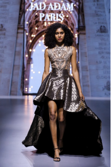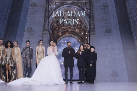 在充滿異域風(fēng)情的“巴爾米拉女王”主題發(fā)布中,法國(guó)高定女裝設(shè)計(jì)師JadAdam攜手紹興永耀紡織品有限公司、紹興晶遠(yuǎn)創(chuàng)意設(shè)計(jì)有限公司展現(xiàn)了尋找內(nèi)心平靜的啟蒙之旅的獨(dú)特過程。設(shè)計(jì)師從柯橋優(yōu)秀的面料中獲得啟發(fā),在華麗的禮服裙中采用了大量的刺繡及繡片繡珠工藝。兩家企業(yè)提供的閃光高密度歐根紗、銀色金屬絲、清透網(wǎng)眼等面料,花型立體簡(jiǎn)潔、色彩透亮多變,為設(shè)計(jì)師帶來了豐富的靈感。從晚禮服、婚紗到高級(jí)時(shí)裝,JadAdam通過特有的藝術(shù)表現(xiàn)手法詮釋了本次禮服設(shè)計(jì)。
