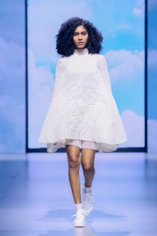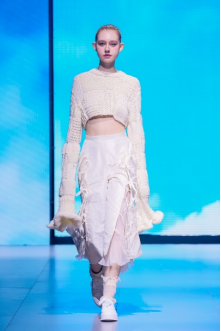 在“童年”主題秀演中,法國(guó)設(shè)計(jì)師聯(lián)袂浙江懿紗紡織科技有限公司、紹興柯橋豐旺紡織品有限公司,圍繞兒童的藝術(shù)、回到學(xué)校、童年的回憶三個(gè)子主題,共同演繹了童年的懷舊故事。設(shè)計(jì)師以精細(xì)的絎縫、印染、明線縫紉及自然著色的效果制作服裝和圖案,在工藝上采用了法國(guó)特有的編織技術(shù),并結(jié)合WALTZ系列花紗、三醋酸、錦滌歐根紗、六角硬網(wǎng)等面料輕薄有型、色彩飽滿的特色,最大程度實(shí)現(xiàn)了紡織工藝的價(jià)值化。特別是在傳統(tǒng)手工藝非遺、生態(tài)環(huán)保材料等系列元素的加持下,為整場(chǎng)秀演增添了可持續(xù)時(shí)尚的價(jià)值。