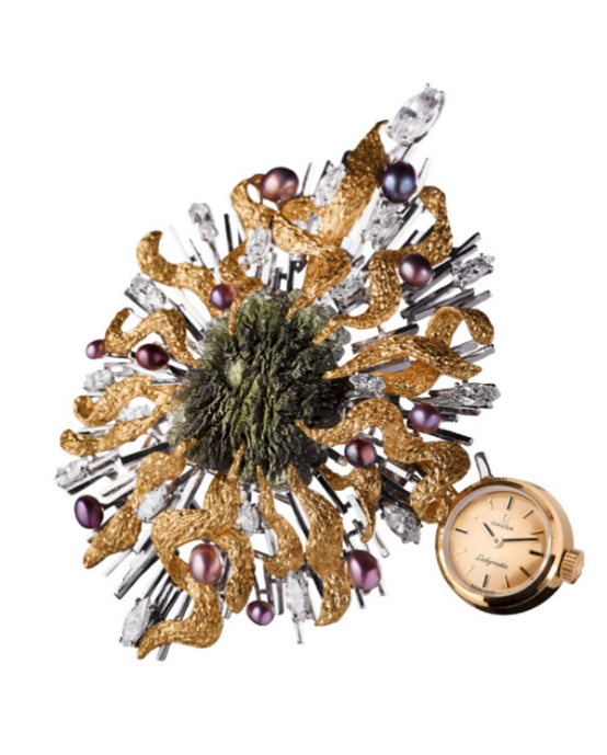 左:Gilbert Albert為1964年紐約世博會設(shè)計的歐米茄隕石寶石可拆卸項鏈表