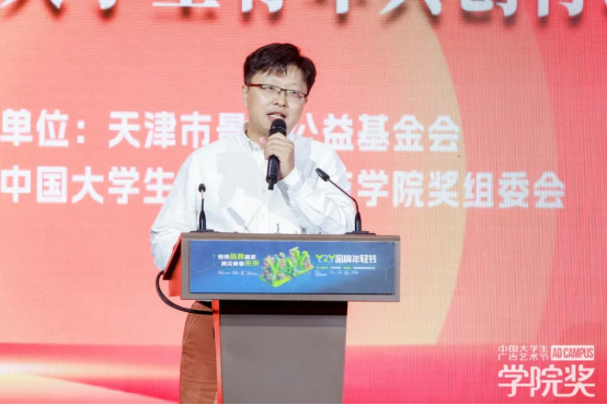 悅康藥業(yè)股份有限公司創(chuàng)始人、董事長于偉仕先生致辭。悅康藥業(yè)成立于2001年,是以高端化學(xué)藥為主導(dǎo)的大型醫(yī)藥企業(yè)集團、是以研發(fā)創(chuàng)新為驅(qū)動的國家級高新技術(shù)企業(yè)。悅康藥業(yè)致力于為百姓研發(fā)用的起的好藥,始終在堅守“營造全球喜悅,關(guān)愛人類健康”的愿景下不斷前行。今年6月,悅康藥業(yè)首次牽手學(xué)院獎,通過青年共創(chuàng),促進健康意識的傳遞,提升品牌傳播的廣度與深度,以及在年輕群體當(dāng)中的認(rèn)知度和美譽度;通過年輕人的創(chuàng)意,讓品牌更有生命力。悅康藥業(yè)將致力于品牌年輕化工程,在校企合作、產(chǎn)教融合領(lǐng)域作出更多探索。