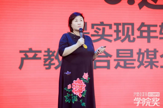 廣告人文化集團總裁穆虹女士發(fā)表致辭演講。她表示,廣告人文化集團不斷創(chuàng)新發(fā)展,聚合產(chǎn)業(yè)力量,打造廣告業(yè)新生態(tài),為校企搭建“鵲橋”,助力品牌強大,做品牌年輕化的引領(lǐng)者。關(guān)于大力探索產(chǎn)教融合新模式,穆虹女士提出看法:“先對接,再融合”。課程改革對接產(chǎn)業(yè)需求、對接專業(yè)崗位,從專業(yè)建設(shè)抓起,實現(xiàn)產(chǎn)教共贏。期待未來與企業(yè)、高校共同攜手為中國廣告事業(yè)的發(fā)展,為中國廣告教育的發(fā)展作出貢獻。