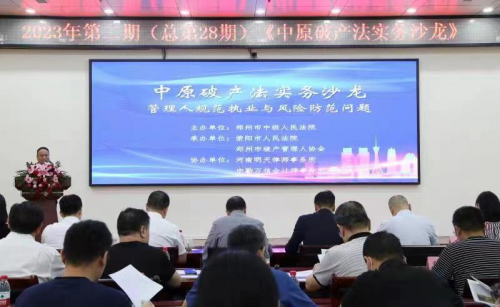 為進一步提高破產審判專業(yè)化水平,優(yōu)化法治化營商環(huán)境,以破產審判服務保障經濟高質量發(fā)展。6月3日下午,由鄭州市中級人民法院主辦,滎陽市人民法院、鄭州市破產管理人協(xié)會承辦的2023年度第二期中原破產法實務沙龍在滎陽市人民法院舉辦。來自政府、法院、高校及從事破產實務、理論研究的省內外專家、法官、管理人代表等110余人現(xiàn)場參加沙龍活動。該期沙龍由鄭州市中級人民法院清算與破產審判庭副庭長陳丕運主持。