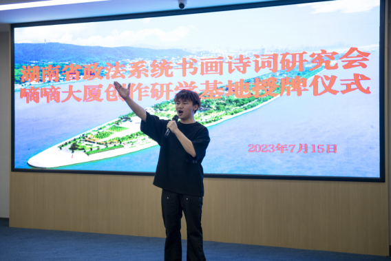 “全面建設(shè)社會主義現(xiàn)代化國家,必須堅持中國特色社會主義文化發(fā)展道路,增強文化自信。文化是民族之根。應(yīng)該讀好‘兩本書’,一本是有字的經(jīng)典之書,一本是無字的實踐之書。嘀嘀大廈緊鄰長沙火車站,來往交通方便,文化氣息濃厚,在長沙法官文聯(lián)學雷鋒書畫工作站的基礎(chǔ)上,進一步成立政法文化創(chuàng)作研學基地,開展各種有意義的詩詞書畫文藝活動,可以助力實現(xiàn)‘以文興商、以商促文’的雙贏目的,為建設(shè)社會主義文化強國貢獻出我們應(yīng)有的心智和力量。這樣的政法文化創(chuàng)作研學基地多多益善?!迸韺ο矊顒咏o予高度肯定。