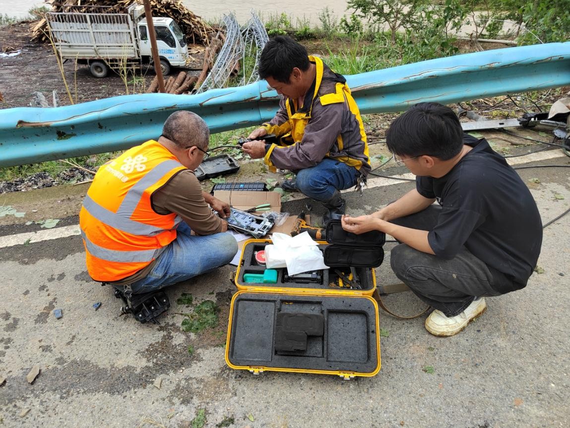 搶修人員徒步涉水,采取肩扛、手抬的方式冒著狂風(fēng)暴雨開(kāi)展通信保障工作,采取緊急布防光纜、應(yīng)急發(fā)電、系統(tǒng)割接等措施,爭(zhēng)分奪秒修復(fù)受損通信設(shè)施,全力以赴保障通信暢通。