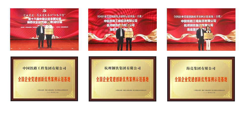 為了更加深入的推廣優(yōu)秀案例企業(yè)的黨建經(jīng)驗,發(fā)揮榜樣的示范作用,促進優(yōu)秀案例企業(yè)之間相互學(xué)習(xí)、考察、交流,共同推動企業(yè)黨建創(chuàng)新發(fā)展,全國企業(yè)黨建創(chuàng)新優(yōu)秀案例征集活動組委會在本屆200家優(yōu)秀案例企業(yè)中,開展了“全國企業(yè)黨建創(chuàng)新優(yōu)秀案例示范基地”征集和申報工作。在各企業(yè)黨委申報的基礎(chǔ)上經(jīng)過審查和考核,決定首批授予中國鐵路工程集團有限公司、杭州鋼鐵集團有限公司、海亮集團有限公司“全國企業(yè)黨建創(chuàng)新優(yōu)秀案例示范基地”稱號。